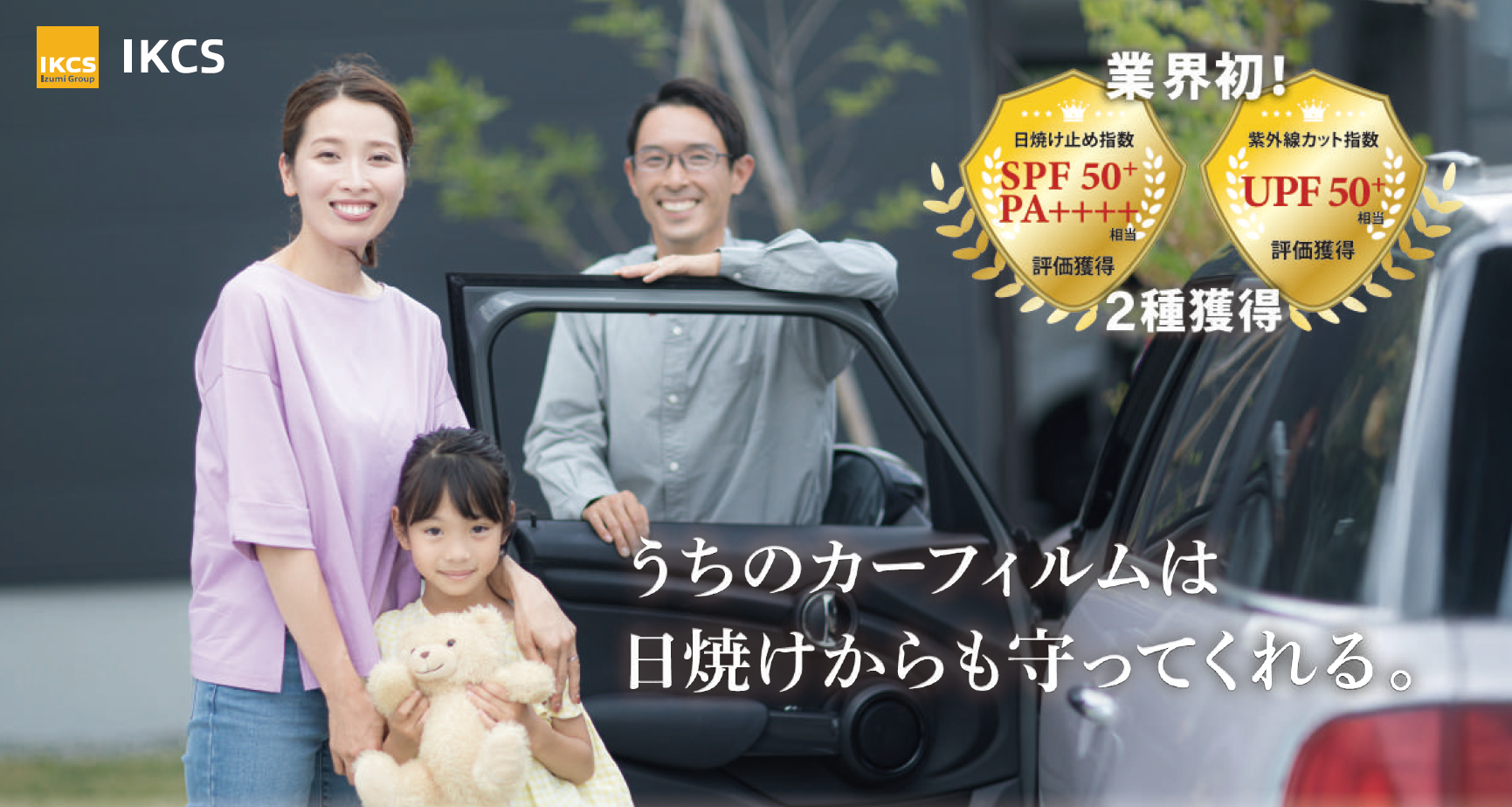 フィルムは視界性耐久性(色アセ)に優れたMADE IN JAPANのアイケーシーフィルムのUVカット機能に優れたルミクールSDUVカットだけでなく遮熱効果もあるシルフィードの2種類を使用しています。